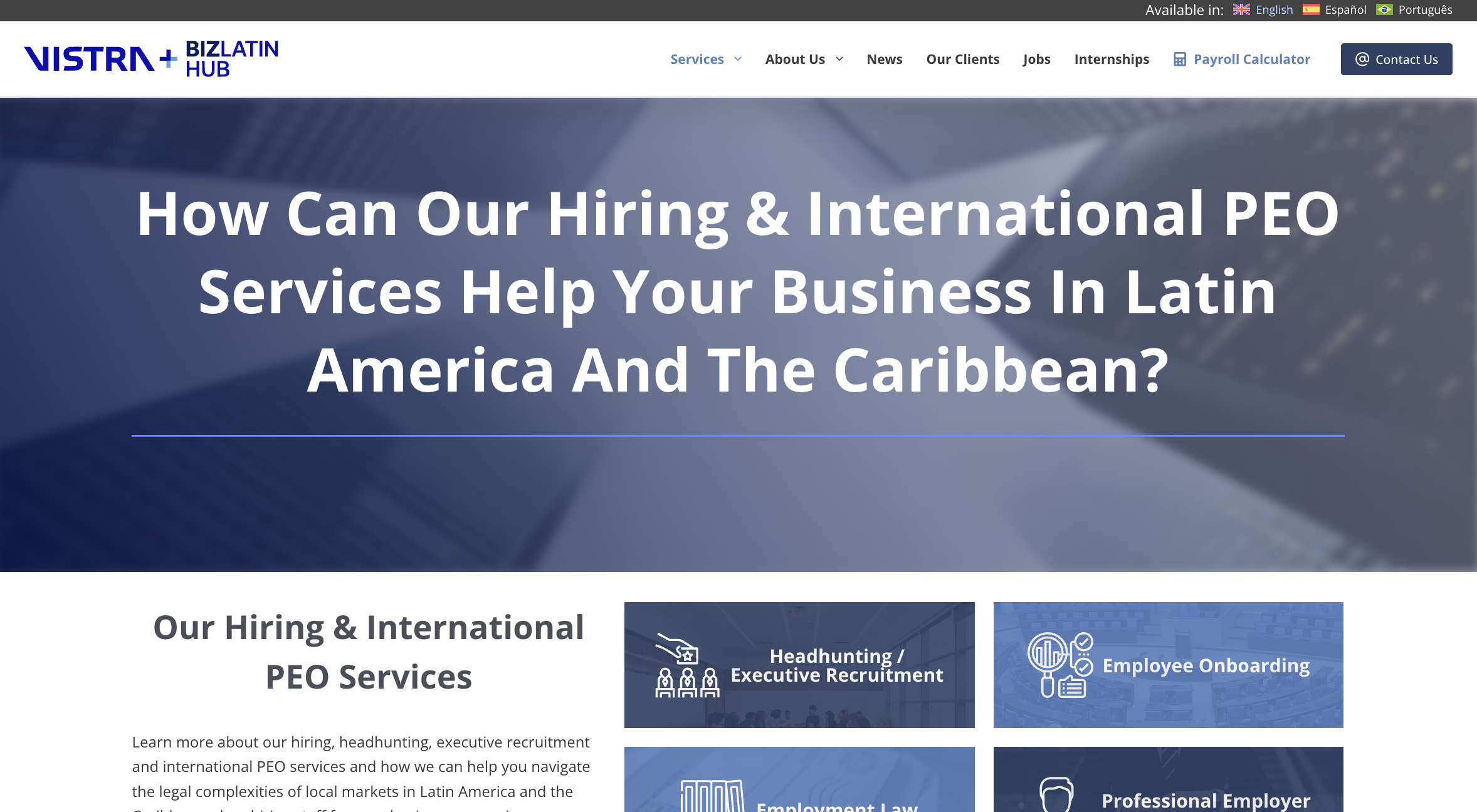 Biz Latin Hub is a Latin America and Caribbean specialist offering comprehensive EOR/PEO services alongside accounting, legal, and entity formation support. The company serves businesses requiring integrated market entry solutions across the Caribbean and broader Latin American region.