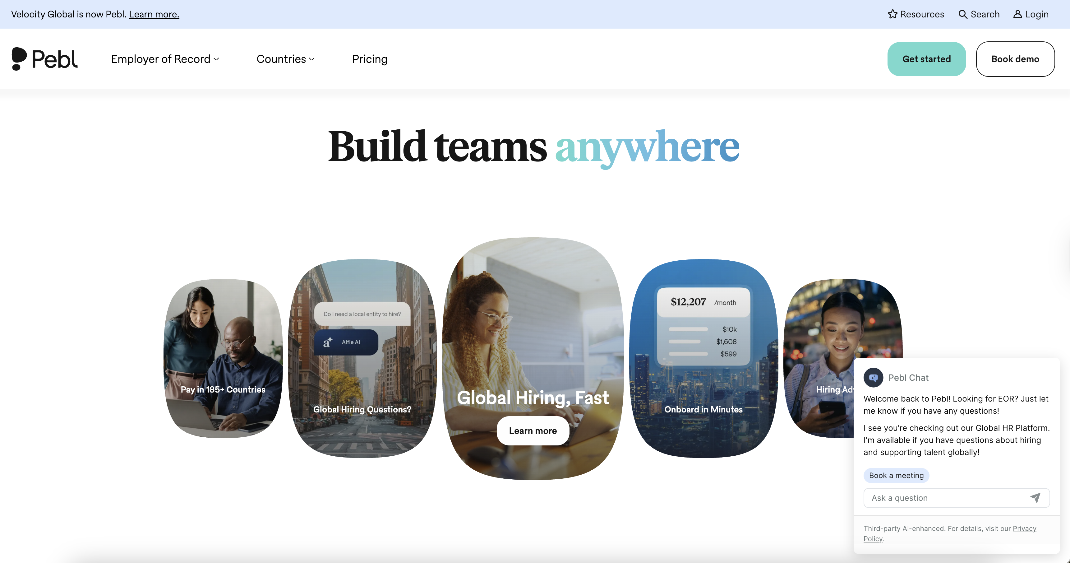 Velocity Global (Pebl) | Global hiring solutions, compliance management, payroll, benefits administration, compliance alerts, in-country legal support | Custom (est. $500+/employee) | 185+ countries | N/A | Demo | Experienced in international employment laws, cross-border legal expertise, up-to-date regulatory compliance services | 2 days | User-friendly platform for managing global teams, real-time global payroll management | Responsive support team, expert compliance consultants available |